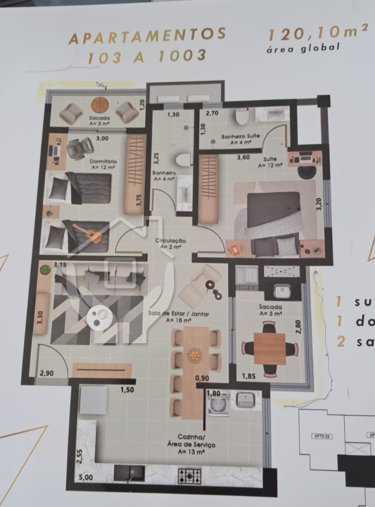 APARTAMENTO 02 dormitórios SENDO 01 Suíte - 120 m/2 ARÉA GLOBAL